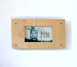 paint on canvas board, photocopy/transparency film, wood